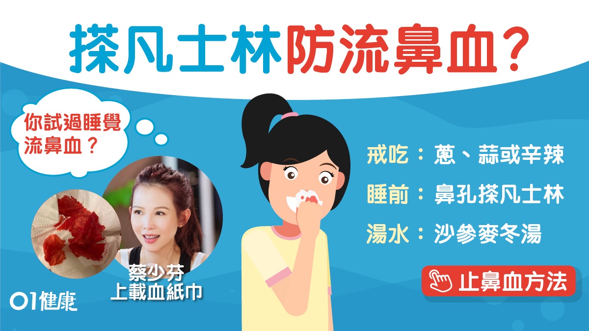 流鼻血 蔡少芬睡覺流鼻血 或因過勞肺燥預防2湯水加搽凡士林